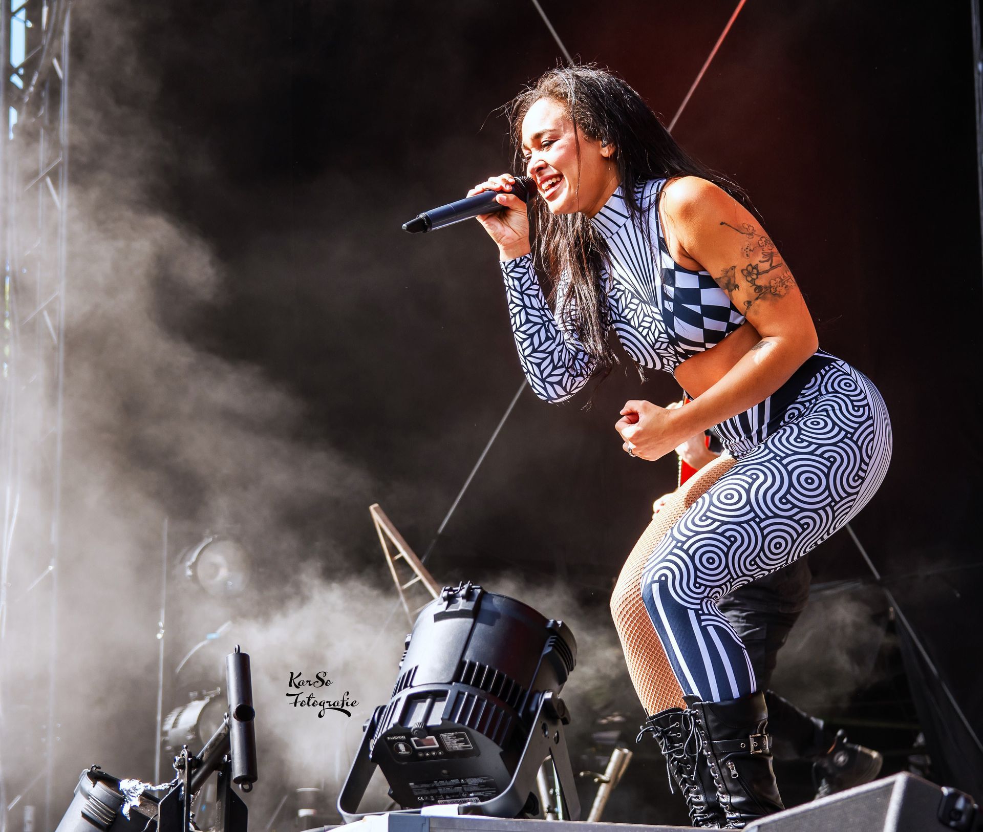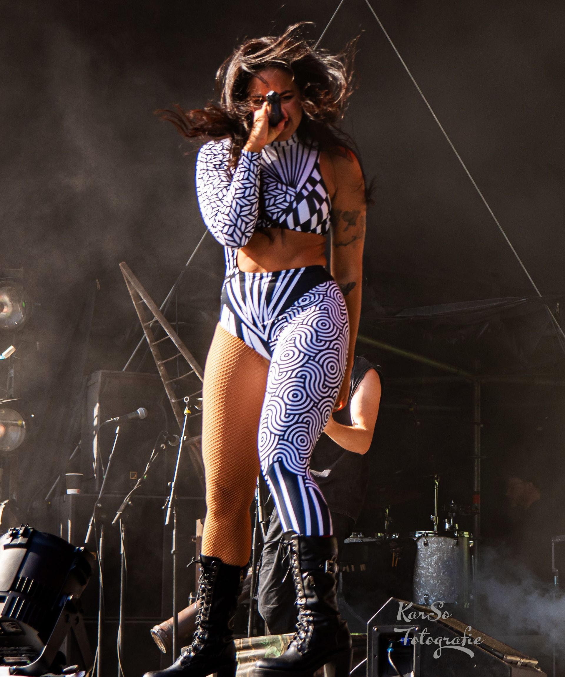 die neben melodischem Klargesang auch beeindruckende Growls beherrscht,