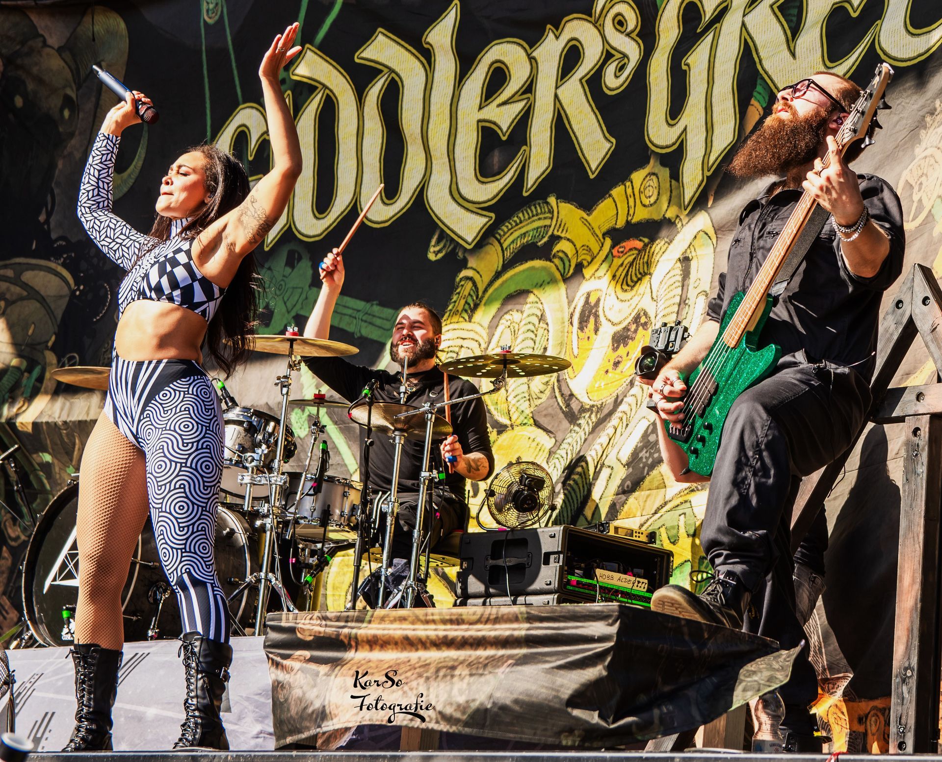 legte mit Symphonic Metal los und riss das Publikum mit ihren ebenso melodiösen wie druckvollen Songs schnell mit.