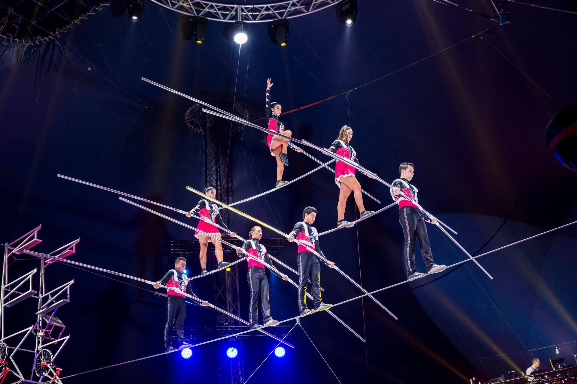 Die weltbekannte Robles Truppe wagt zu siebt die gefährliche Pyramide auf dem Hochseil