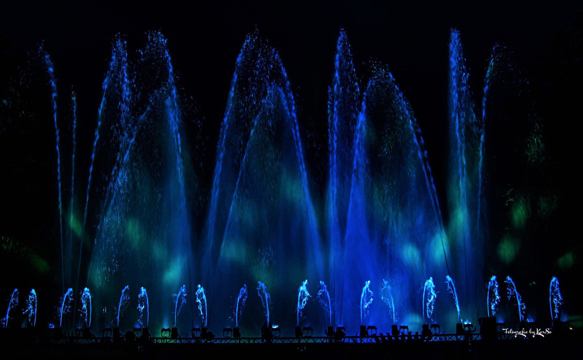 Mich erwarten riesige von Licht, Laser, Wasser und Musik untermalte Farb-und Klangexplosionen,