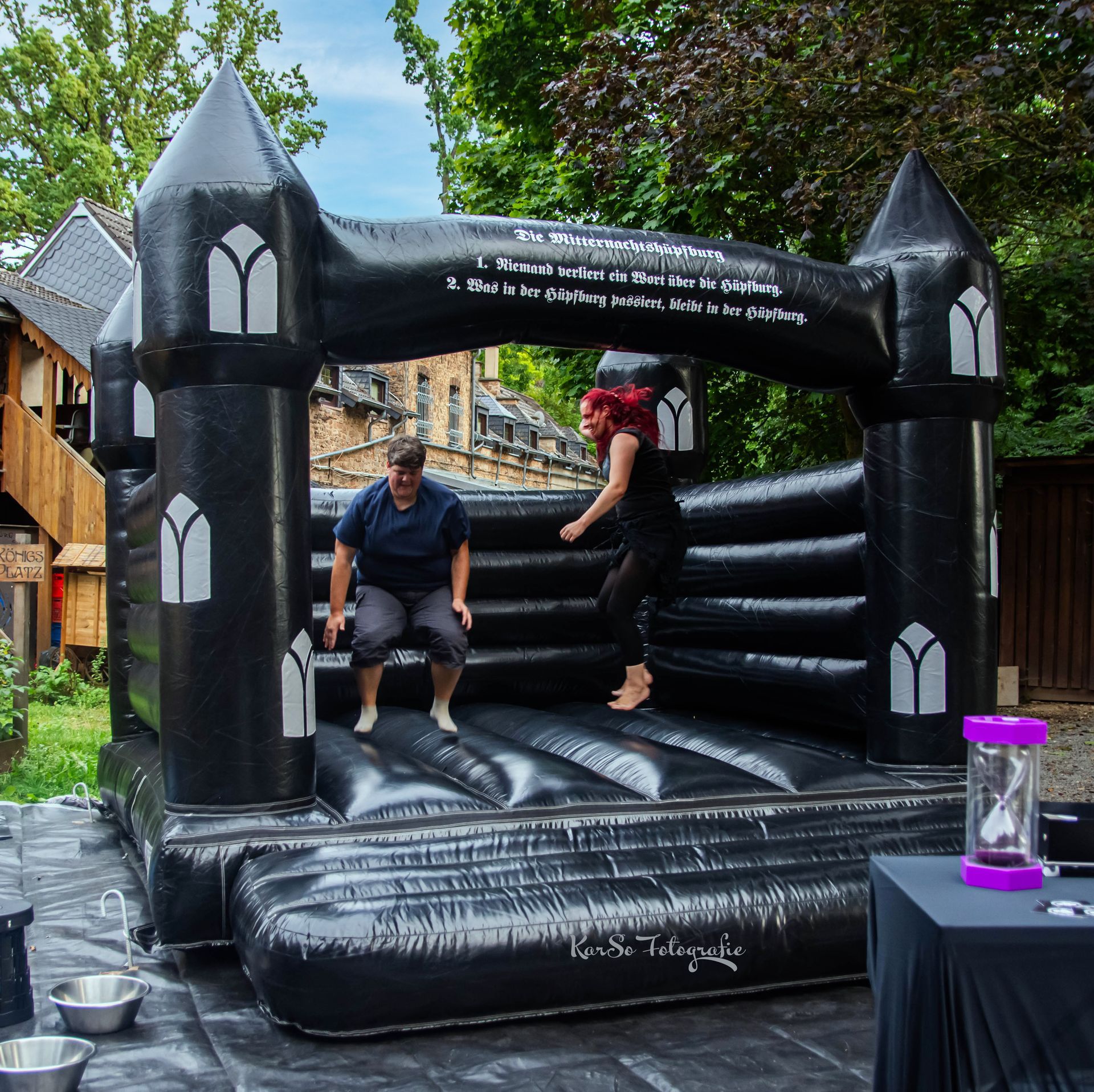 "Mae'r hyn sy'n digwydd yn y castell neidio hanner nos yn aros yn y castell bownsio hanner nos!!!"