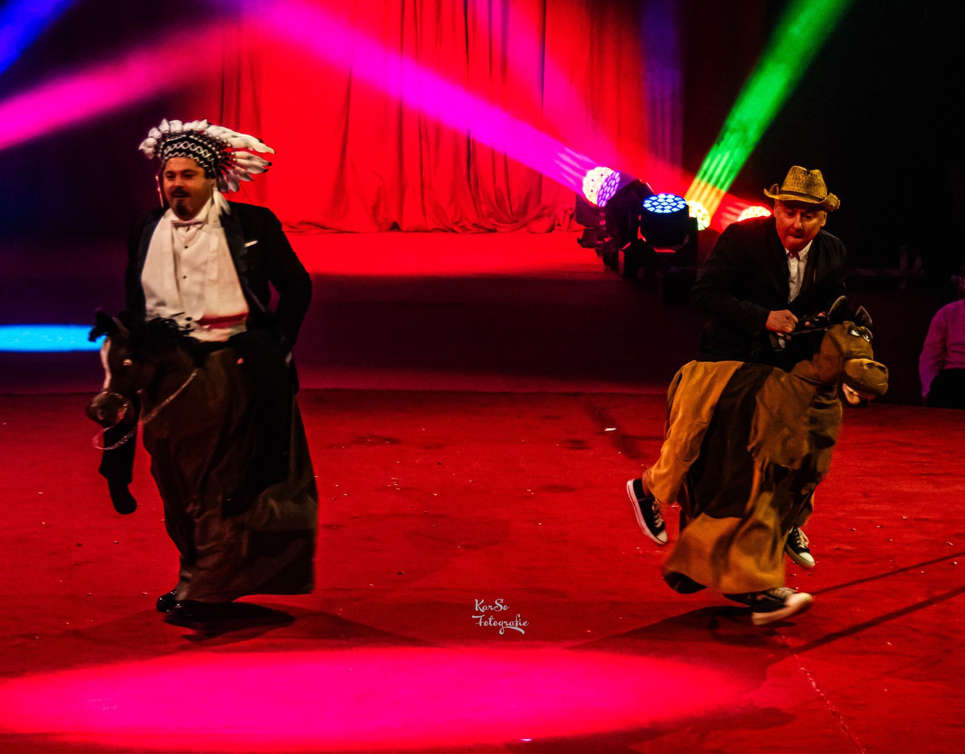 organize su alemleri, ya da sahte atlara binmiş iki kovboy ve Kızılderililer